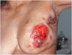 - 輔助治療的併發症:在所有乳癌患者,皆須接受手術後的輔助性治療-化學治療,有些則另外需要放射線治療以及賀爾蒙治療。在化學治療下,因為全身血流分配的平均,在相對組織體積減少的因素下,患側局部所得到的藥物濃度,相對地減少,故局部復發率相對地提高。而在放射線治療下,因為缺少軟組織的護墊作用下,局部皮膚的發炎以及皮下組織的不適一直是揮之不去的夢魘。